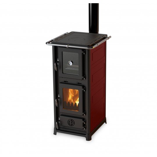 Astucieux poêle à bois + cuisinière avec son four et son dessus en fonte pour cuisiner.